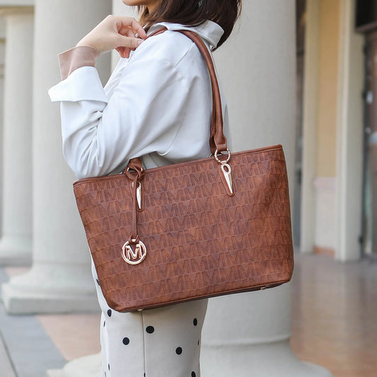 Vegan Leather Women'S Tote Bag, Small Tote Handbag, Pouch Purse & Wristlet Wallet Bag 4 Pcs Set by Mia K - Mustard