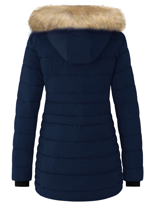 Women'S Cotton Padded Puffer Jacket Full Zip Winter Coat Beige L